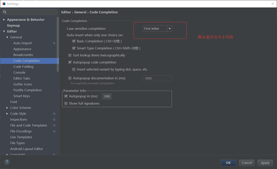 IntelliJ IDEA的代码提示与补充功能有一个特性:区分大小写。如上图所示,默认就是 First letter 区分大小写的。