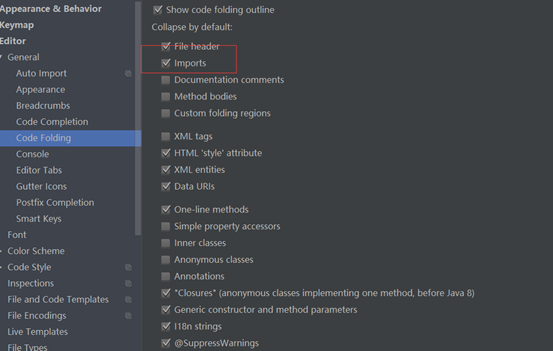 勾选上的表示该类型的代码在文件被打开的时候默认是被折叠的,去掉勾选则反之。
