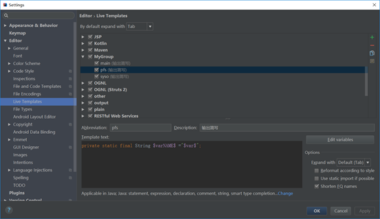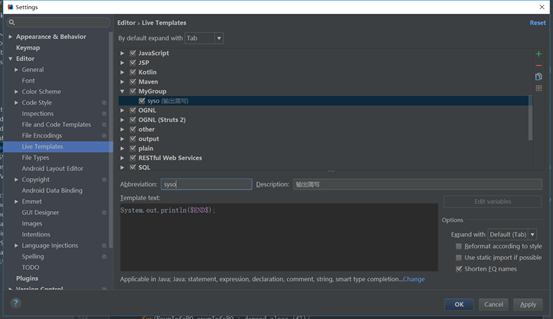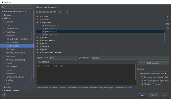 - idea设置快速生成方法模板