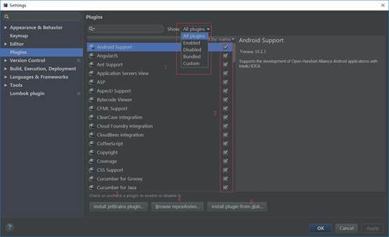 标注 1:显示 IntelliJ IDEA 的插件分类,