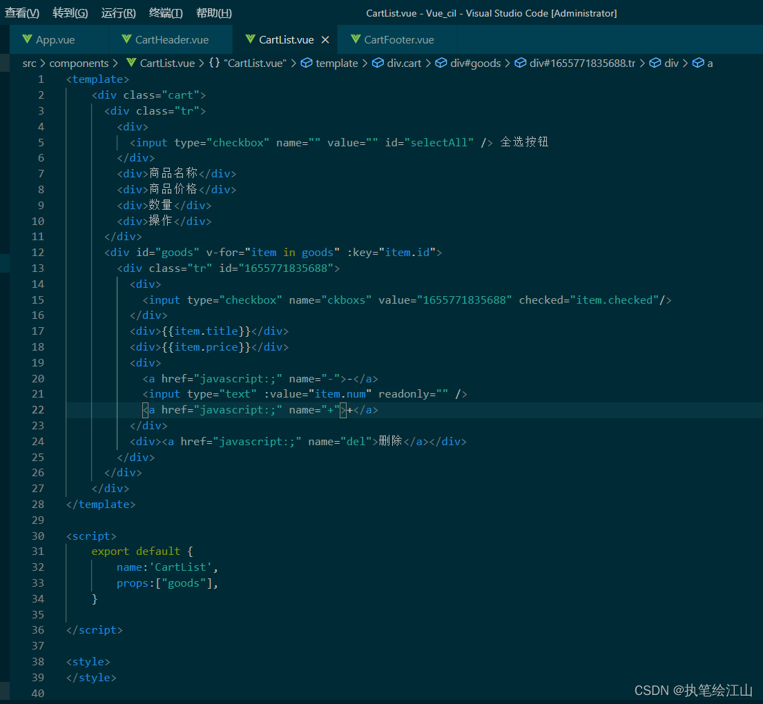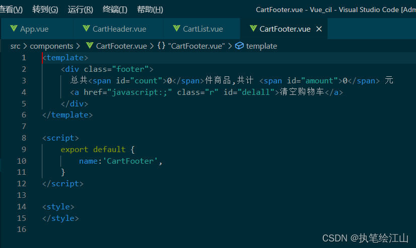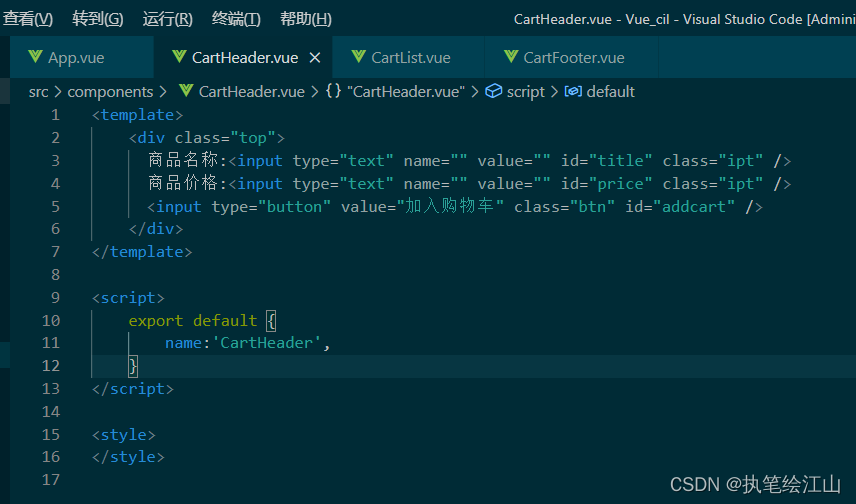 子组件做的就是把html的页面样式写在子组件的盒子中,然后用export default将值释放出去,让父组件接收,子组件的书写方式比较容易,如下所示:
