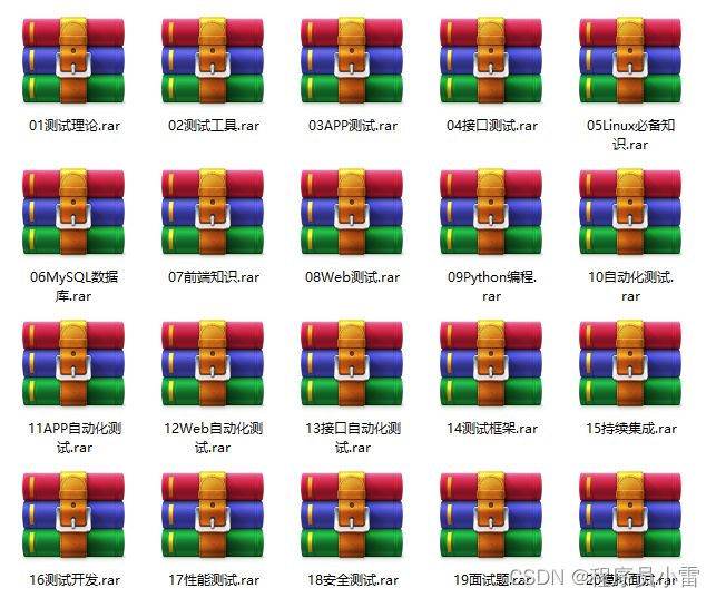 这些资料,对于【软件测试】的朋友来说应该是最全面最完整的备战仓库,这个仓库也陪伴上万个测试工程师们走过最艰难的路程,希望也能帮助到你!有需要的小伙伴可以点击下方小卡片领取
