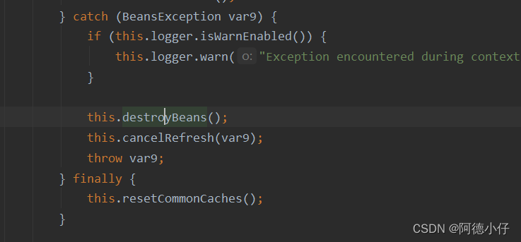 如果过程中出现异常走到这里销毁所有创建的单例bean,AtomicBoolean active标识false.最后清除所有缓存及类加载资源