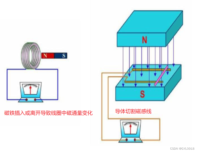 电磁感应定律也叫法拉第电磁感应定律,电磁感应现象是指因磁通量变化而产生感应电动势的现象。例如,闭合电路的一部分导体在磁场里做切割磁感线的运动时,导体中就会产生电流,产生的电流称为感应电流,产生的电动势(电压)称为感应电动势。