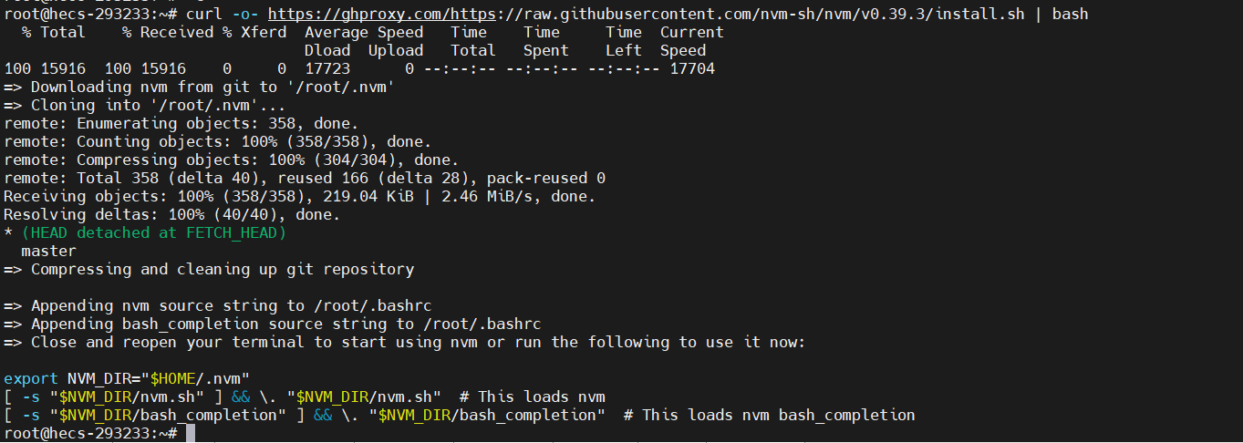 curl -o- https://ghproxy.com/https://raw.githubusercontent.com/nvm-sh/nvm/v0.39.3/install.sh | bash