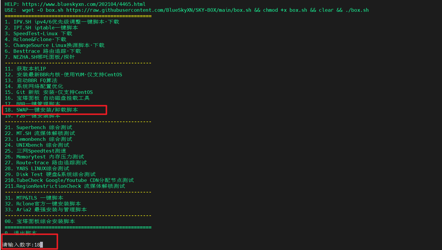 wget -O box.sh https://ghproxy.com/https://raw.githubusercontent.com/BlueSkyXN/SKY-BOX/main/box.sh && chmod +x box.sh && clear && ./box.sh