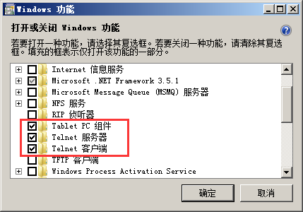 开始->控制面板->卸载->打开或关闭Windows功能,勾选如下三个服务
