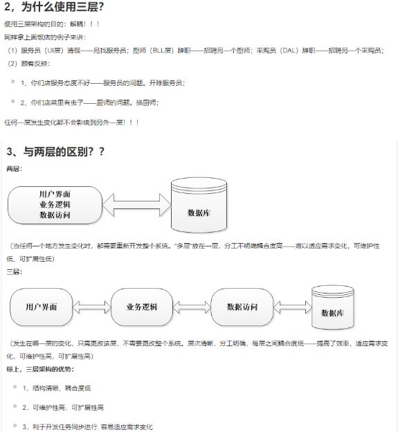 三层架构 通常意义上的三层架构就是将整个业务应用划分为:界面层、业务逻辑层、数据访问层。区分层次的目的即为了 “高内聚低耦合”是为了检验软件产品好坏的一个标准的思想。在软件体系架构设计中,分层式结构是最常见,也是最重要的一种结构。微软推荐的分层式结构一般分为三层,从下至上分别为:数据访问层、业务逻辑层(又或称为领域层)、表示层。