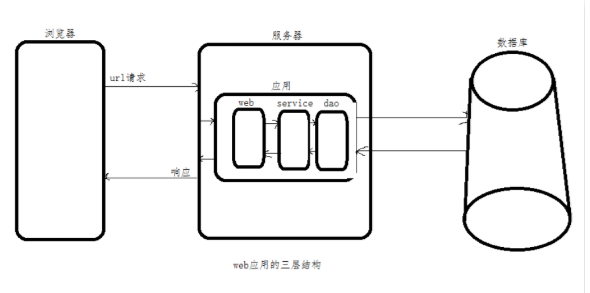 表示层(JSP、html)表现层也称为界面层,位于最外层(最上层),离用户最近。用于显示数据和接收用户输入的数据,为用户提供一种交互式操作的界面。业务层(service)业务层在体系架构中的位置很关键,它处于数据访问层与表示层中间,起到了数据交换中承上启下的作用。由于层是一种弱耦合结构,层与层之间的依赖是向下的,底层对于上层而言是“无知”的,改变上层的设计对于其调用的底层而言没有任何影响。如果在分层设计时,遵循了面向接口设计的思想,那么这种向下的依赖也应该是一种弱依赖关系。持久层(DAO)持久层,有时候也称为是数据访问层,其功能主要是负责数据库的访问,可以访问数据库系统