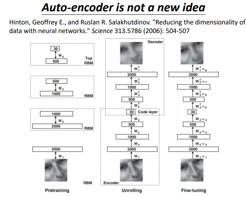 Auto-encoder并不是一个新的想法,在之前就别提出了,只不过做的不是很成功而已。
