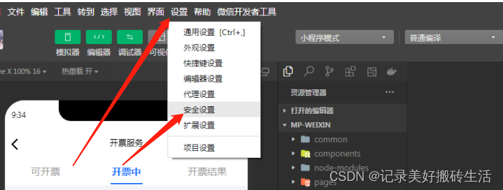 2、微信开发工具安装成功后,先创建一个项目,然后打开打开服务端口