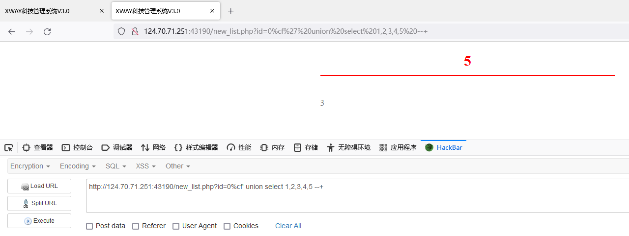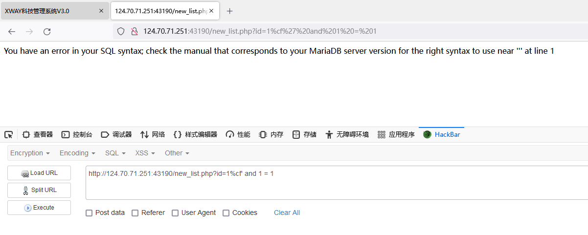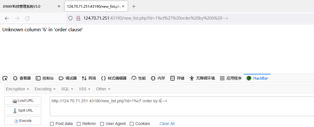 我们在'号前添加了个%cf后,网页提示我们语句错误,说明我们闭合成功了,接下来就在后面加上注释就可以了。
