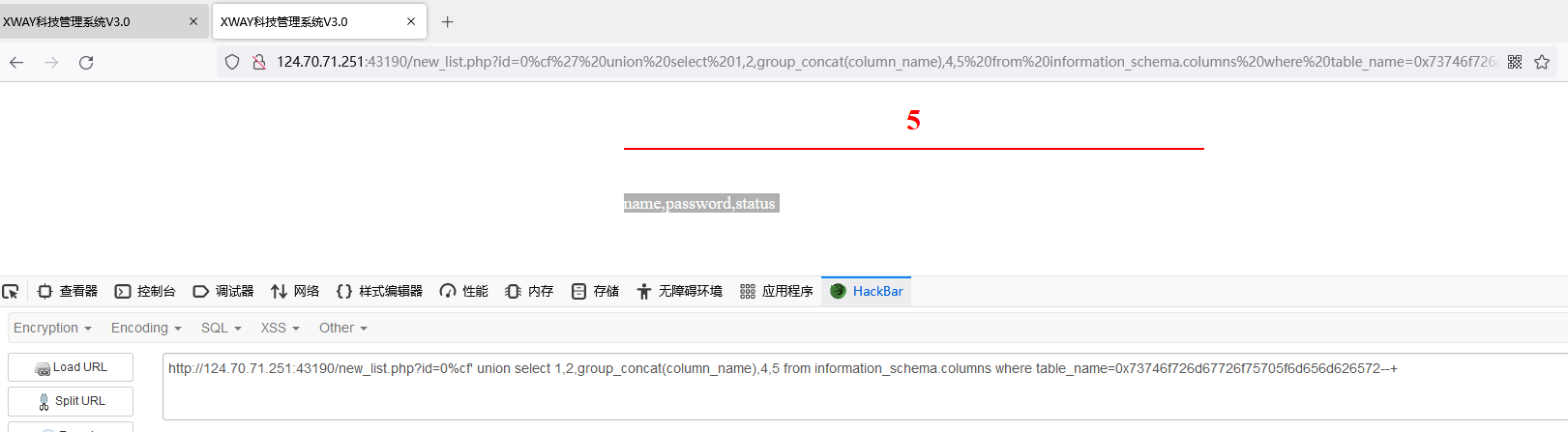 得到列名,我们要求的是name和password的数据。直接两个一起查