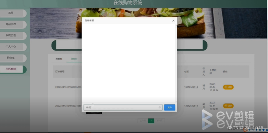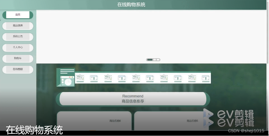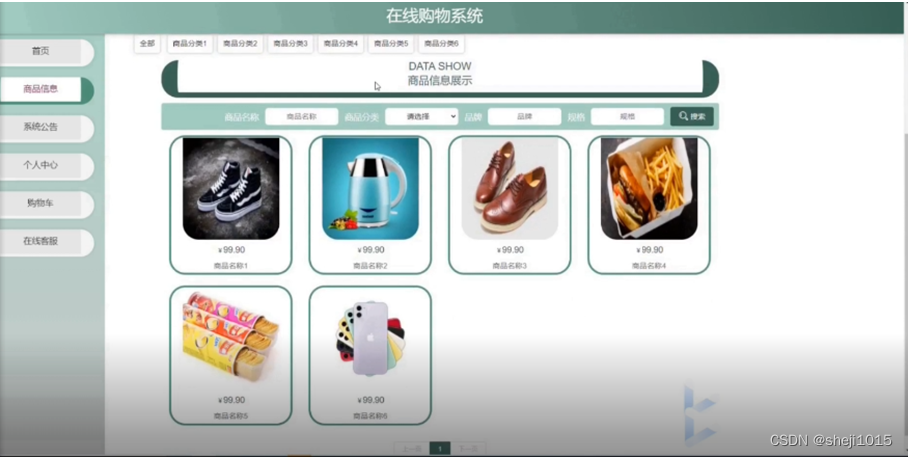用户登录进入在线购物系统可以对首页,商品信息,系统公告,个人中心,购物车,在线客服等功能进行相应操作,如图5-8所示。