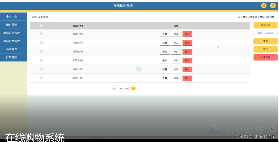 商品分类管理,在商品分类管理页面可以对商品进行查看,修改和删除等操作,如图5-5所示。