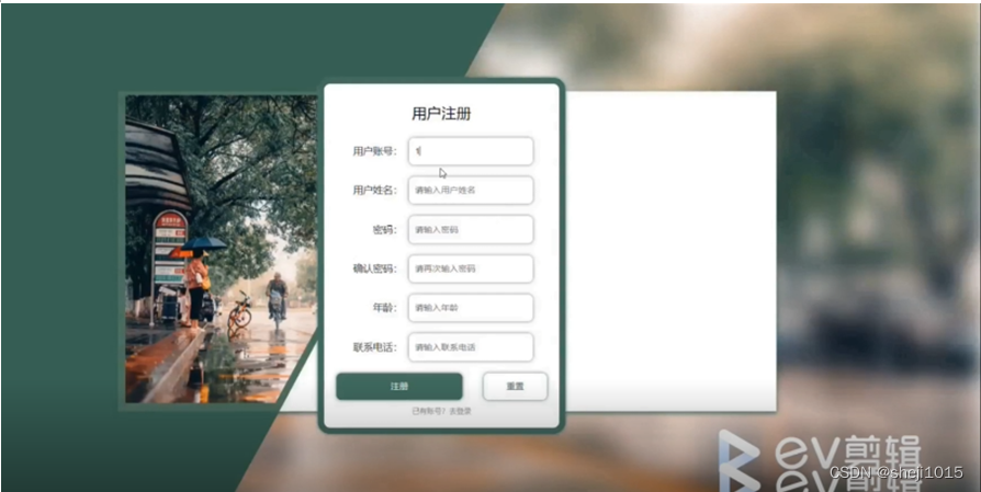 用户注册,在用户注册页面输入用户账号,用户姓名,密码,确认密码,年龄,联系电话等内容进行填写并进行注册和重置,如图5-7所示