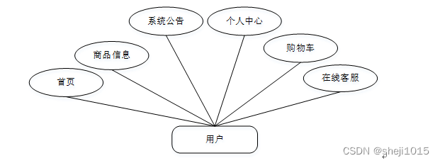 用户登陆后,主要模块包括首页,商品信息,系统公告,个人中心,购物车,在线客服等功能。用户用例图如图4-5所示。