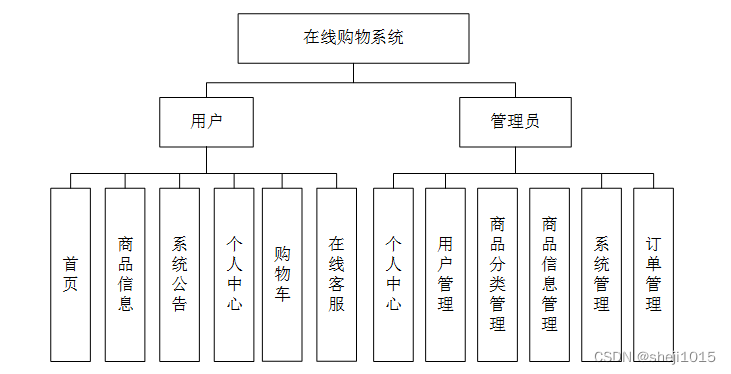 考虑到实际生活中在在线购物系统的需要以及对该系统认真的分析,将系统权限按管理员,用户这两类划分。