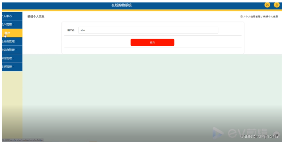 用户管理,在用户管理页面可以对用户名进行提交,如图5-4所示。
