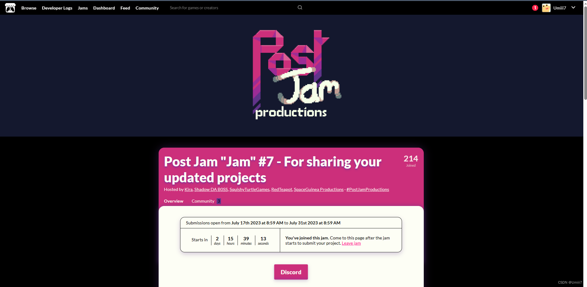 因此,剩下的十分钟,由于我个人事先轻视了提交流程以及网络服务器波动。在提交截止时间内,非常遗憾我们的游戏没有出现在已确认提交的名单中,因此总体来说GMTK 2023 Gamejam对我们团队以及我个人来说算是一个失败的结果。