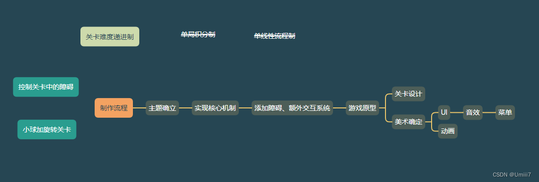 团队主要涉及流程分为如下几个阶段:分析大赛主题、进行游戏策划、根据个人能力沟通交流确立游戏内容、制作游戏原型、关卡设计、添加美术素材、测试搭建并上传。