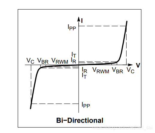 说完和稳压管的区别,我们和稳压管一样,随便选取一个TVS管的datasheet来说一下TVS管哪些参数值得去注意。我先放伏安特性曲线