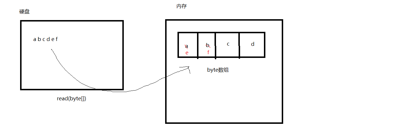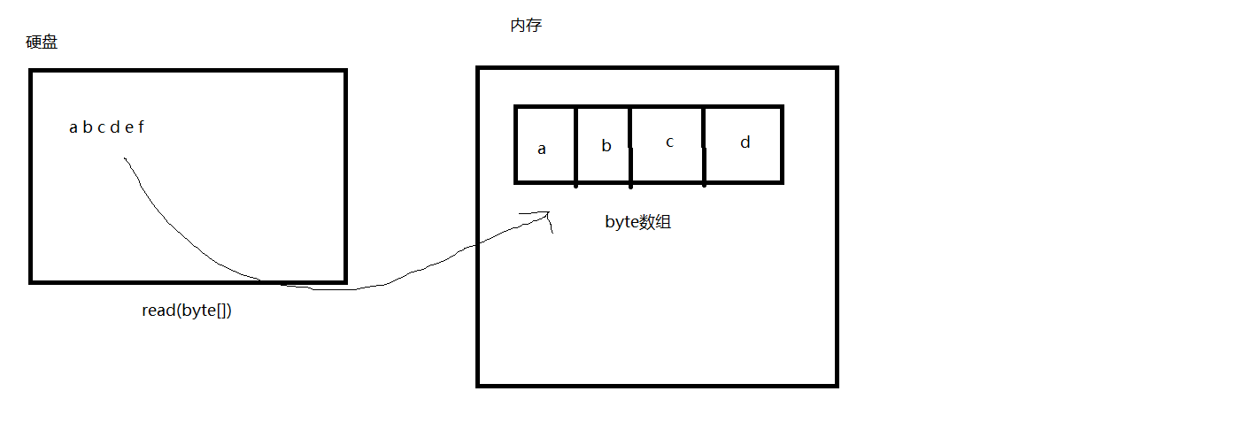 这样可以一次最多读取b.length个字节,减少了硬盘和内存的交互,提高程序的执行效率,往byte[]数组当中读。