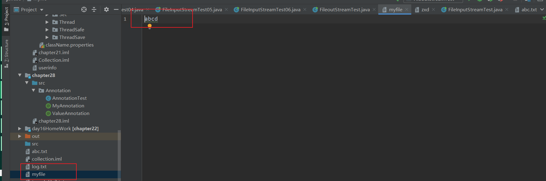 这时候,我们会看见idea里面多了一个myfile文件,里面还有abcd