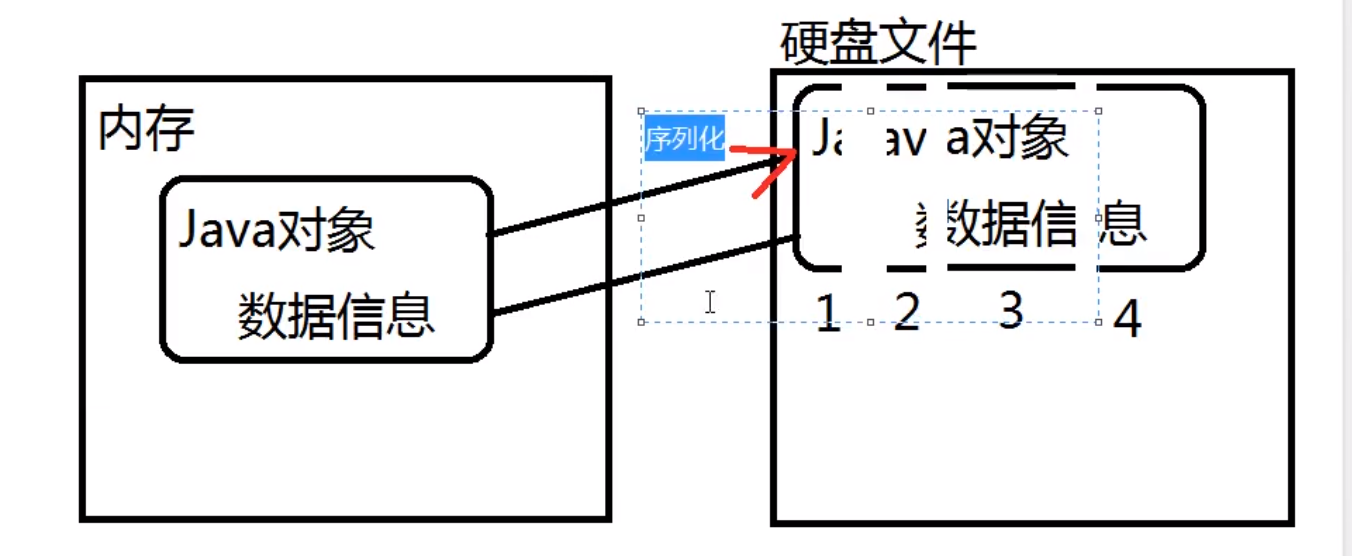 将内存中的Java对象放到硬盘文件上叫序列化,是因为内存中的Java对象切割成一块一块的并且编号,放到硬盘文件上。