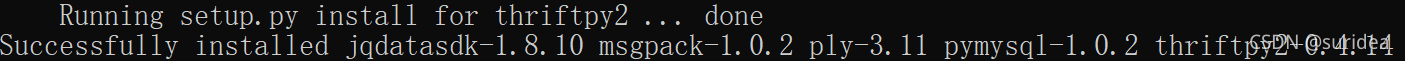 1、安装 ,在cmd下输入: pip install jqdatasdk,安装成功显示如下: