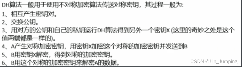DH主要用于IKE动态协商时重新生成新的IPSec SA所用的密钥,因为它可以通过一系列数据的交换,最终计算出双方共享的密钥,而不依赖于在前期生成的密钥生成材料。