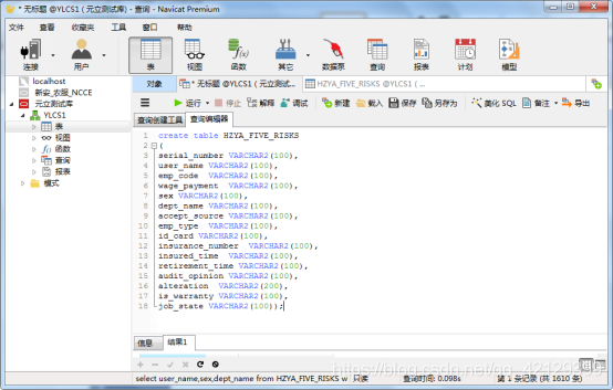 2、将excel文件中数据导入创建的HZYA_FIVE_RISKS表(选中excel所有数据复制再选中HZYA_FIVE_RISKS表的一行粘贴即可,有可能这种方式导入数据会出现错误,不要慌张,使用Navicat自带的【导入】工具就可以完成数据的导入)