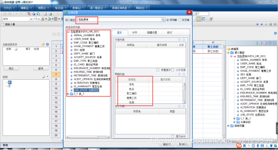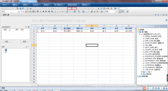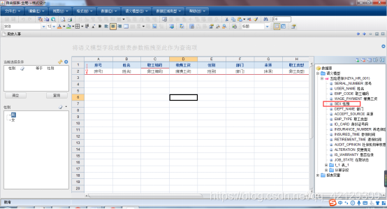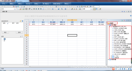 选择【五险退保】语义模型,将字段拖入【明细列表】