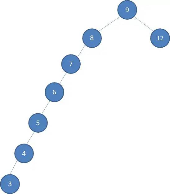 为什么要有平衡树呢?因为当二叉搜索树如下图“瘸腿”时,搜索左侧的结点,原来的速度 会掉到 ,与链表一个速度,失去了价值。![]()