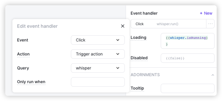 现在,在 ILLA Cloud 中建立组件和操作之间的连接: