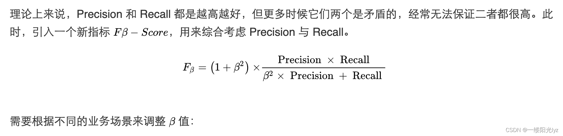 - 互联网金融公司要扩大业务量,尽量多的吸引好客户,此时风控部门就会提高阈值,从而提高模型的查准率 Precision,同时,也会放进一部分坏客户,导致查全率 Recall 下降。