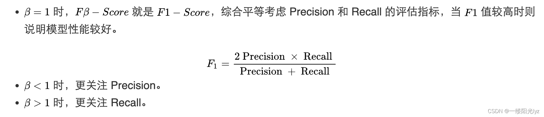 Recall (查全率),又称召回率,表示的是,模型正确识别出为正类的样本的数量占总的正类样本数量的比值。一般情况下,Recall 越高,说明有更多的正类样本被模型预测正确,模型的效果越好。