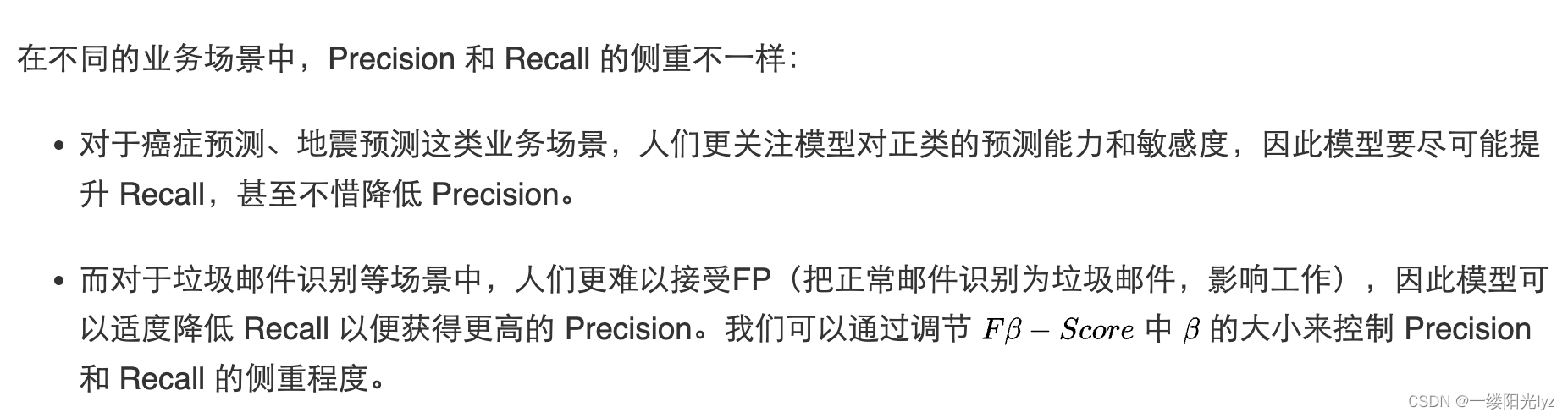 「把垃圾文件识别为正常文件」和「把正常文件识别为垃圾文件」,二者相比,、我们显然更能容忍前者,因此模型可以适度降低 Recall 以便获得更高的 Precision。