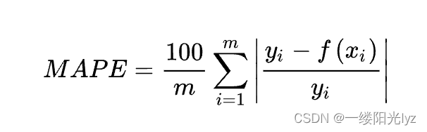 平均绝对百分误差(Mean Absolute Percentage Error,MAPE)是对 MAE 的一种改进,考虑了绝对误差相对真实值的比例。