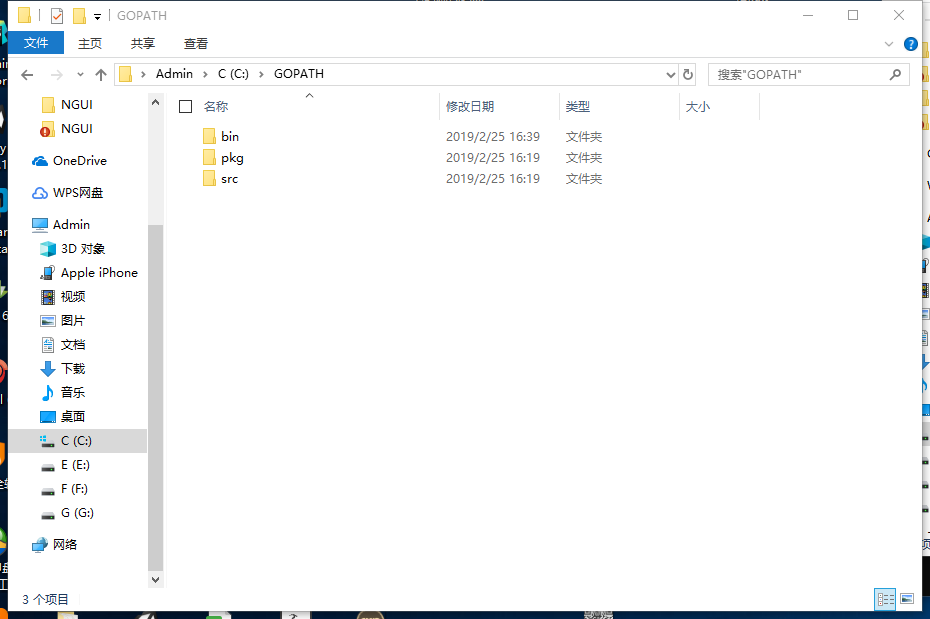 执行这句代码时,你可以实时观测GOPATH第一个目录的文件夹,会创建一些文件在src下,以及pak文件夹,执行完之后,继续执行