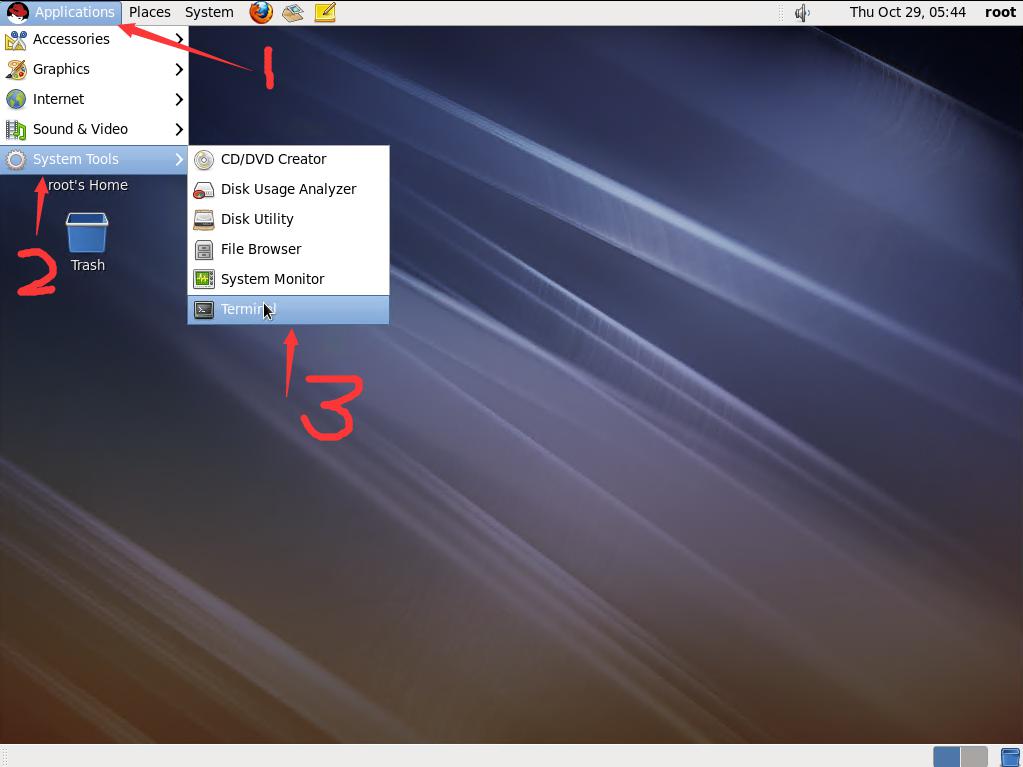 三、在菜单栏,点击Applications ---》System Tools ---》Terminal