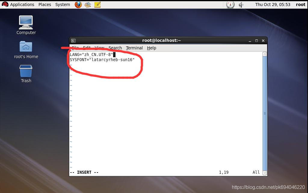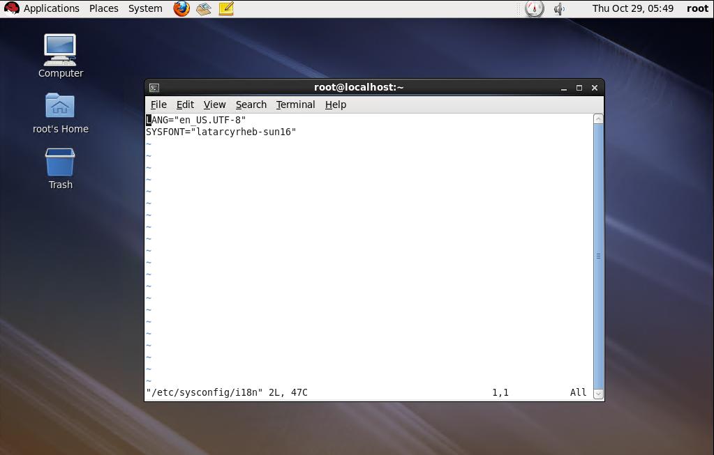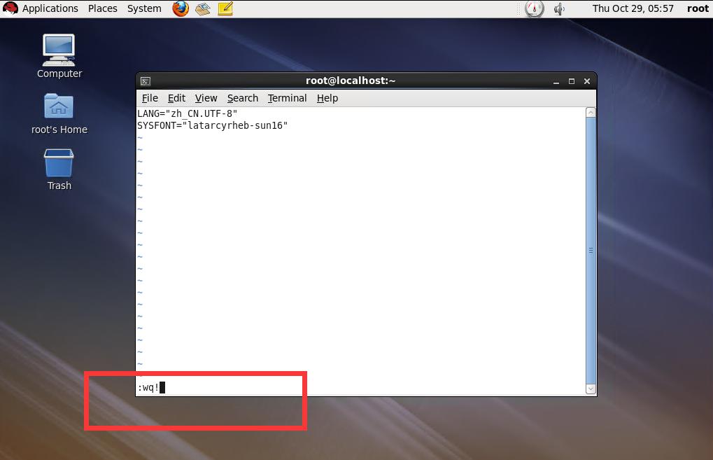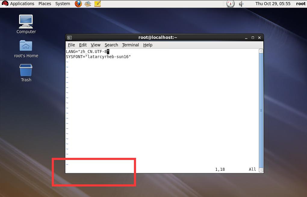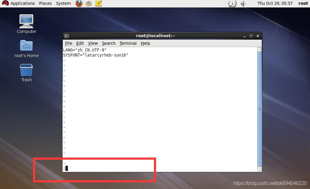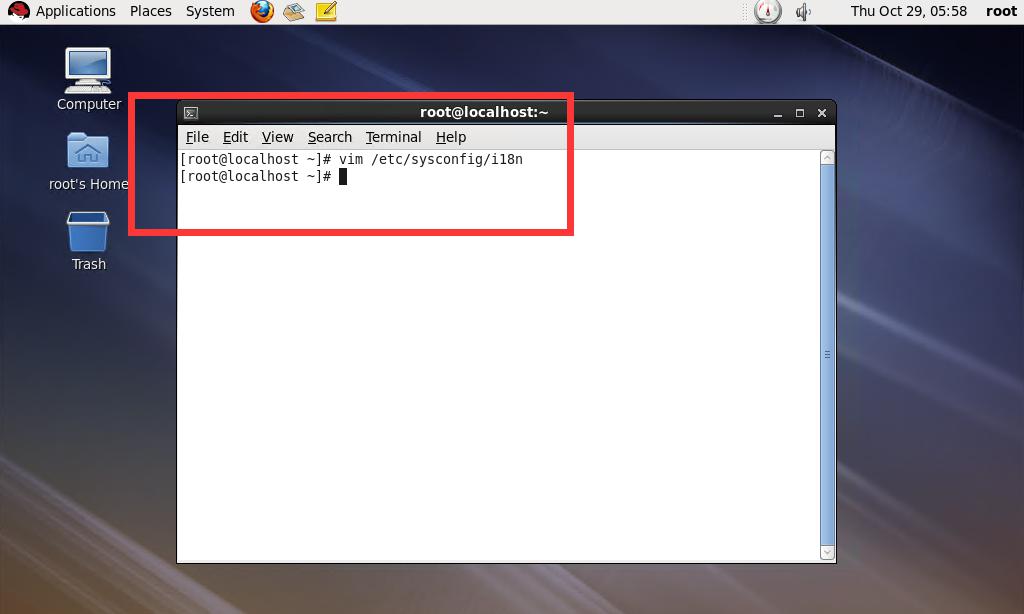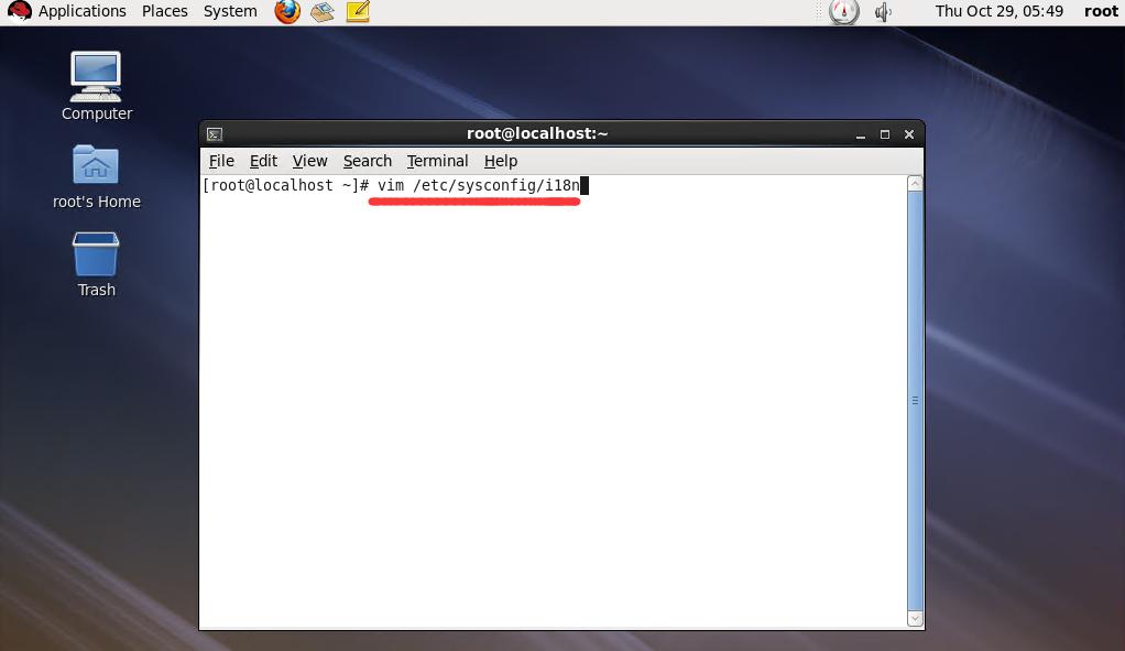 四、在弹出来的黑框框中,输入:vim /etc/sysconfig/i18n