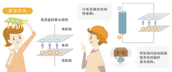 电容器储存电荷的能力称作静电容量,电极面积越大或电极间距离越短,则静电容量越大,根据电极板间的绝缘体(空气或电介质)性质不同,静电容量也会有很大的不同,用来表示这种关系的是相对电容率