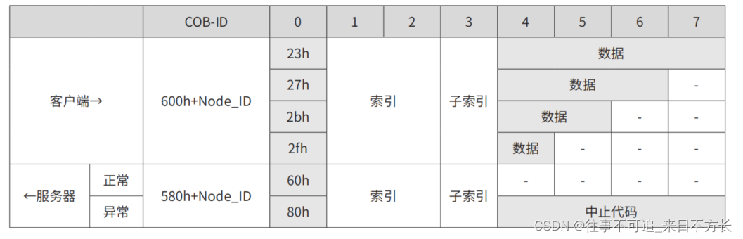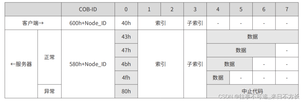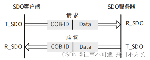 SDO之间的数据交换至少需要2个CAN报文才能实现,且2个CAN报文的标识符不一样。