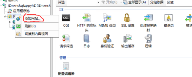 打开iis服务,新建网站,填写对应配置。