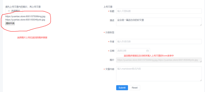 前端上传图片后返回对应https访问链接,大致效果如下。