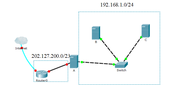 | A | centos 6.5 | em1 202.127.200.1 | em2 192.168.1.30 |