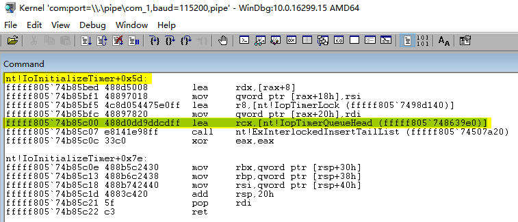 fffff80206185c00 488d0dd9ddcdff lea rcx,[nt!IopTimerQueueHead (fffff80205e639e0)]