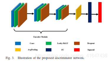 D网包括一个编码模块,一个全局平均池化层,一个全连接层,一个sigmoid层。