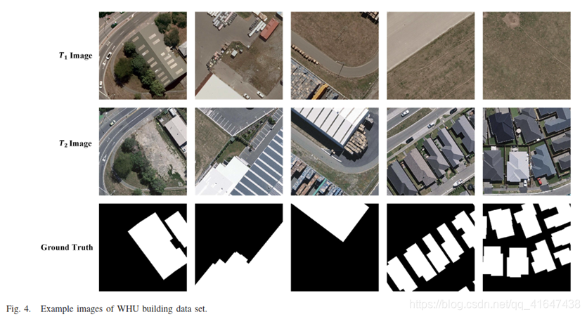 为了验证提出的方法,两个变化检测集在实验中被使用:WHU building data